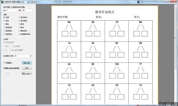 小数数学计算题出题器是一款专门为小学生批量生成数学题目的辅助工具,可以给小学的孩子们出题练习算术,还有学霸模式,学霸模式请自备草稿纸。软件拥有海量的出题方案,直接一键就可以出题,为老师以及家长省下了不少麻烦事,并且软件内存占用也非常小,值得拥有。软件特别适合幼儿园的小朋友和小学生的做题需求,其中题目难度可以选择十以内、二十以内、五十以内、一百以内,还可以自己选择数字的范围。软件出题的类型也是非常的多,如:连续加法、连续减法、加减混合、逆向加法、逆向减法等等,满足各位家长老师的需求。小编提供的是免安装绿色版,双击打开就可以使用,快来下载体验吧。