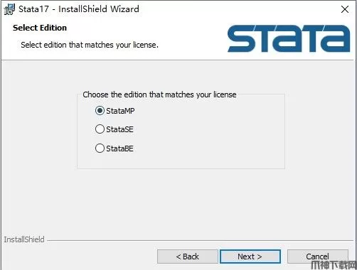 4、选择想要安装的版本,Stata BE为基础版、Stata SE为特别版、Stata MP为并行计算版;