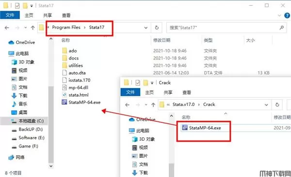 1、下载解压得到,Stata 17安装包和crack补丁;