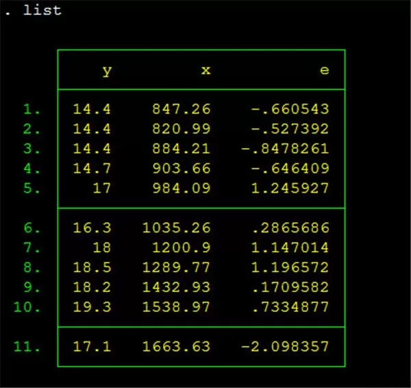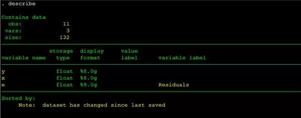 输入这个命令之后,可以看到对内存中存在的数据的描述,如11个观测案例、3个变量。