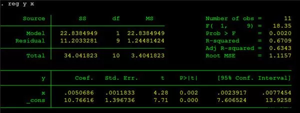 4、进行最小二乘估计的命令:reg y x