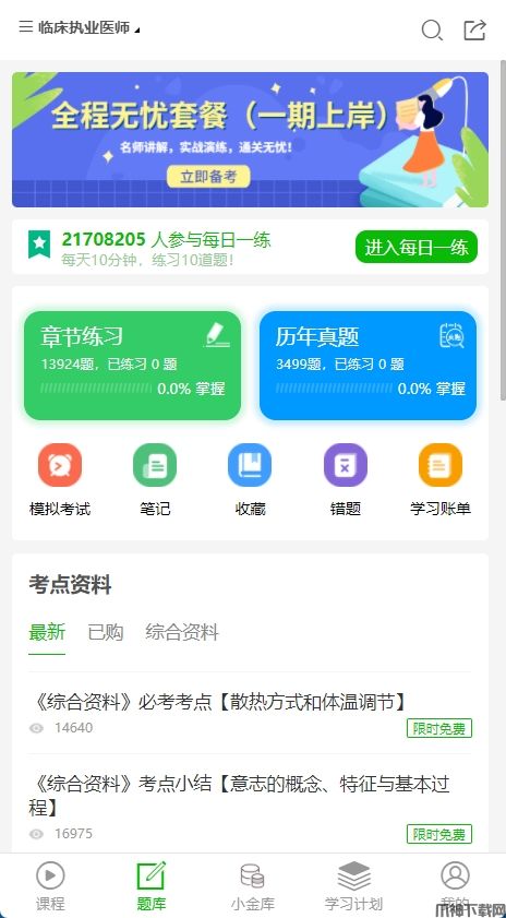 每天系统会从用户选择的科目中,随机抽取10道重点难点考题供用户免费学习。通过每日一练,用户可以利用几分钟的碎片时间,随时随地进行练习答题,轻松掌握各科目必考知识点。