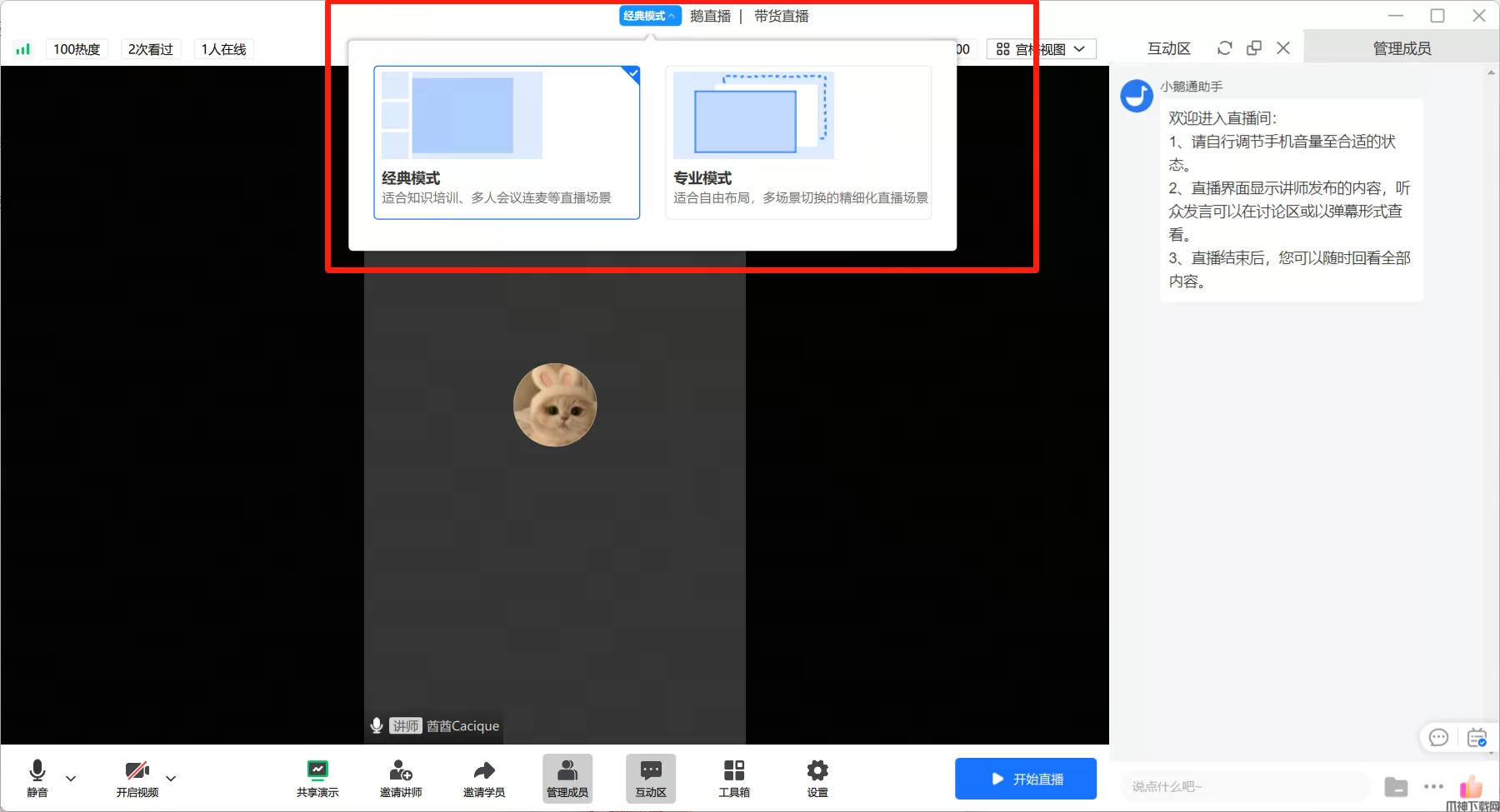 鹅直播电脑版是一款专为多样化需求而设计的公共领域直播工具,适用知识付款、私人领域电商、职业培训、招骋直播、线上峰会以及企业培训等场景。