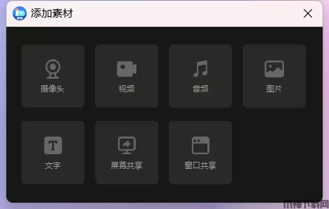 (3)当前可添加素材类型:摄像头、视频、音频、图片、屏幕共享、窗口共享、滚动文字。