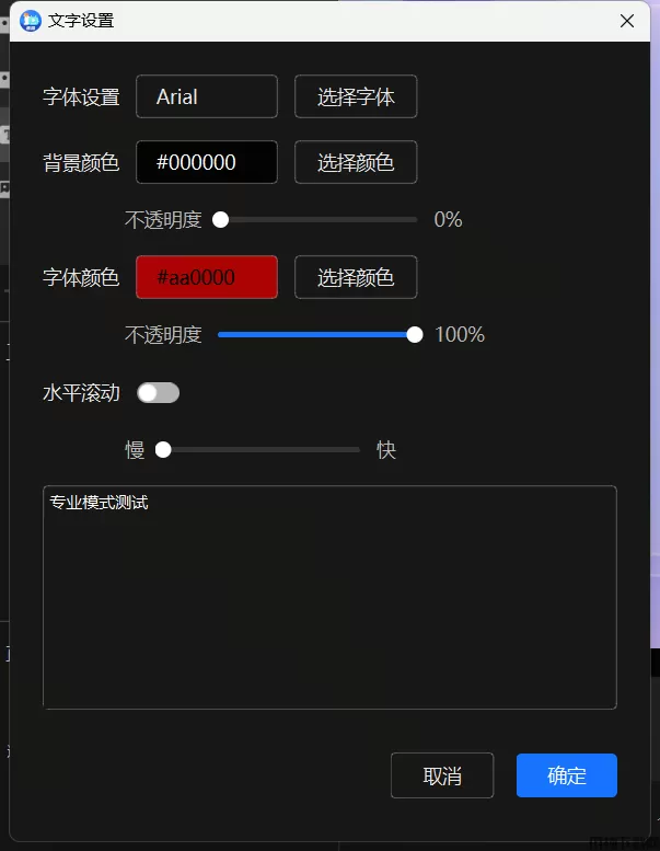 可设置字体颜色、背景颜色,支持文字滚动能力。