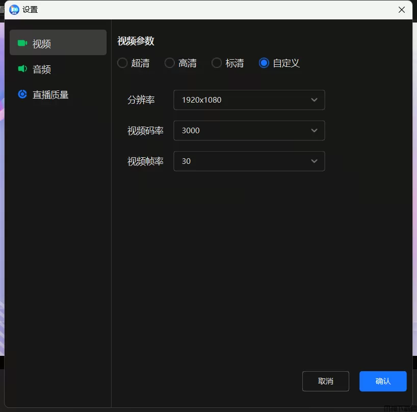 商家可自行设置分辨率、码率、帧率,控制直播流量的消耗。