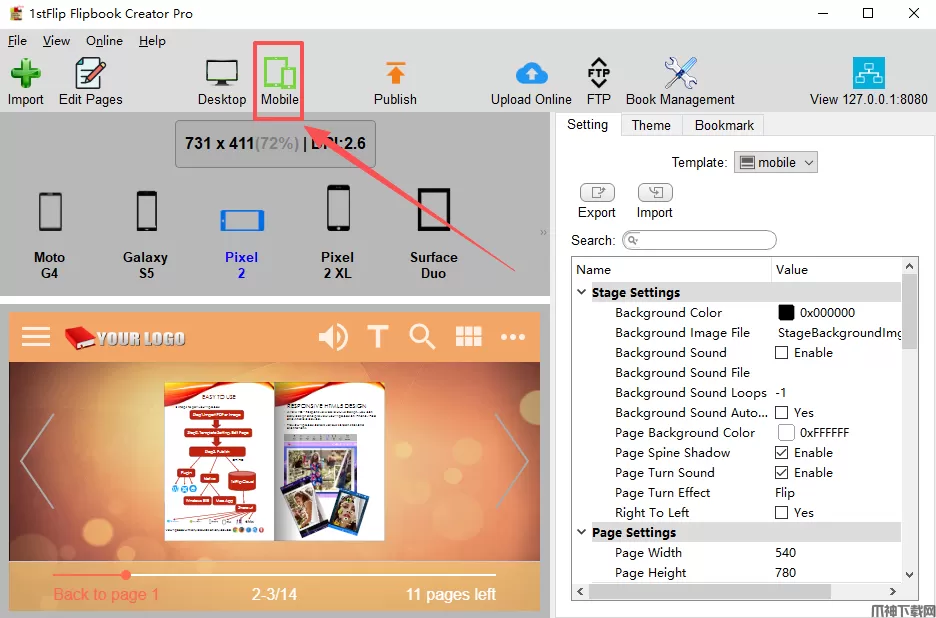 1stFlip Flipbook Creator Pro是一款帮助用户快速制作适配电脑和手机等设备的电子书软件,它能够将PDF文件轻松转换为电子书格式,并提供丰富的模板,如场景、背景音乐、放大镜、全屏、自动翻页和缩略图来提升内容的精致度,同