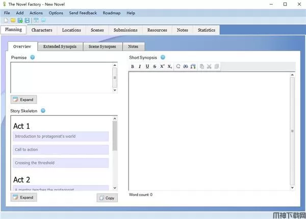 The Novel Factory是一款专业的小说写作编辑软件,一款轻巧便捷的小说创作软件,软件专门设计来帮助小说写作的各个方面,从构思到出版,写小说很难,而且写一部好小说更加难,软件通过管理乏味的数据组织,在适当的时间提供有用的建议,并提供动力和有用的资源,转化为简单。