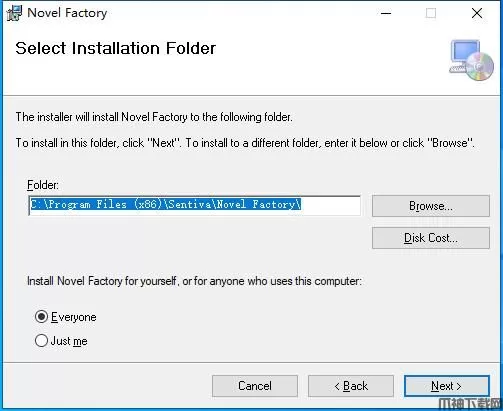 安装向导默认设置的软件默认安装路径为C:\Program Files (x86)\Sentiva\Novel Factory