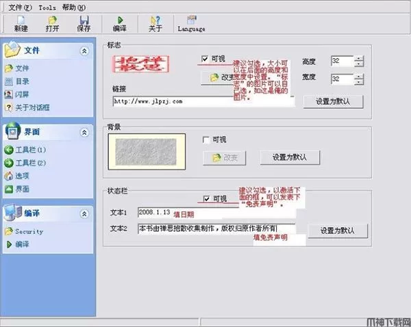 e书工场是一款EXE电子书设计的软件。功能非常强大,用户可以把图片、Flash等捆绑成EXE电子文档的制作软件并且可以将您电脑上需要重新设计的电子书放到软件上编辑。软件拥有定制图标、高度优化阅读器、全文搜索、强力加密选项、全本加密或选择加密部分页面,无临时文件打开打开电子书、使用网页对话框或图片对话框、高速压缩的名号等功能,用户可以把需要编译的文件以及网页文件放入同一个文件夹里,然后按照操作流程完成就可以做到满意的作品另外新版本提供了一个背景设置,支持修改HTML设置可以把flash动画制作成EXE的格式,并且可以在资源中选择需要打包的内容,自由的设置用户需要的工具栏,感兴趣的朋友可以下载体验体验!