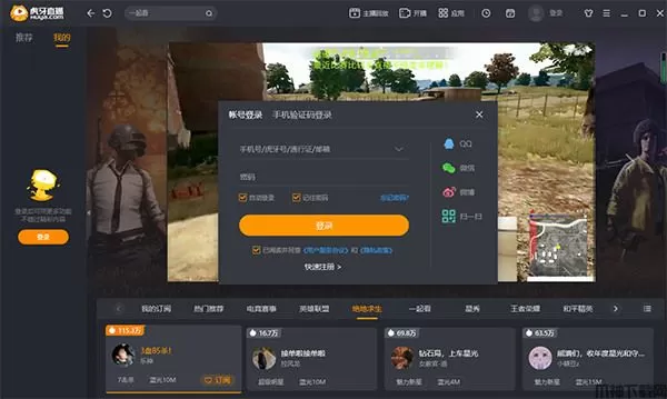 在这里小编要为大家说下,虎牙直播是可以支持第三方账号快速登陆,所以你有QQ或微信或微博等账号都可以直接关联登陆哦。如你有手机端的虎牙直播账号了,也可以快速扫描二维码进行登录。