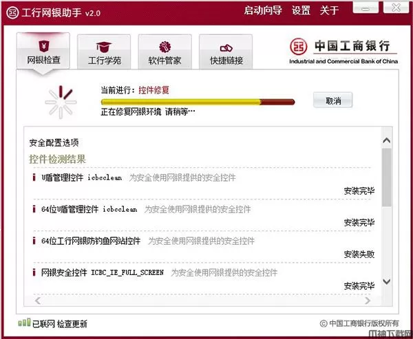 2、工行网银助手会针对不同客户类型,检测不同客户的使用环境,依据最新推出的相关软件智能拟定并执行确定的安装计划,引导所需软件安装后浏览器设置,让用户在使用工行网银时能够更加方便、简单和快捷。