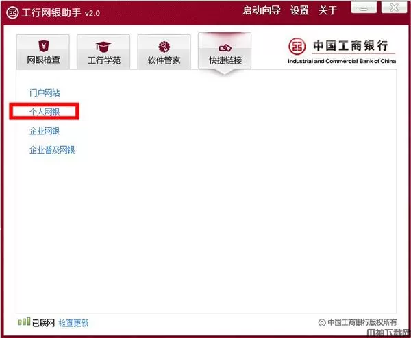 3、全部安装完成,可以点击【快捷链接】,选择中国工商银行后确定,然后再点击个人网上银行登陆就可以了。