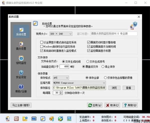 摄像头安防监控是一款专业的摄像头监控系统软件,用户使用普通USB摄像头加上本系统,就可以让您的个人电脑也拥有企业级的智能现场监控录像功能,帮助用户轻松监控办公、家庭、工厂等场所。软件同时支持视频及音频的录像、完善的报警功能、全天候的循环监控、定时监控、定时关机、老板键、定时及连续拍照等等功能,是用户家人生命及财产安全的重要保护神之一。 摄像头安防监控系统使用独创的网络加密技术,以使您的资料能安全的在网络上进行传输,同时系统也拥有相当完善的防黑客措施,同时我们还在不断的加强各种安全手段,请您放心的使用。