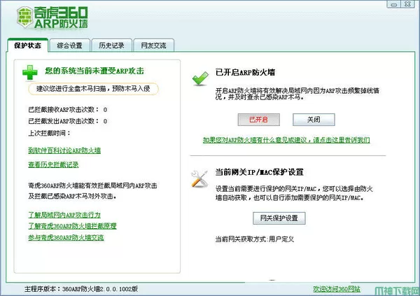360ARP防火墙官方版是360安全中心官方推出的一款专业对ARP病毒,木马攻击的防火墙软件,网络病毒对计算机危害是非常大的,尤其是ARP病毒,他能篡改网关正确的MAC地址,威胁你的计算机通信安全,所以小编这里建议大家安装!360ARP防火墙可以通过在系统内核层拦截ARP攻击数据包,确保网关正确的MAC地址不被篡改,可以保障数据流向正确,不经过第三者,非常的安全有效,这样你的信息也不会泄露出去,可以让ARP病毒无机可乘,来保护网络畅通,运行时不会占太多运行空间,可以一直开启。快来下载360ARP防火墙为你的计算机保驾护航吧!