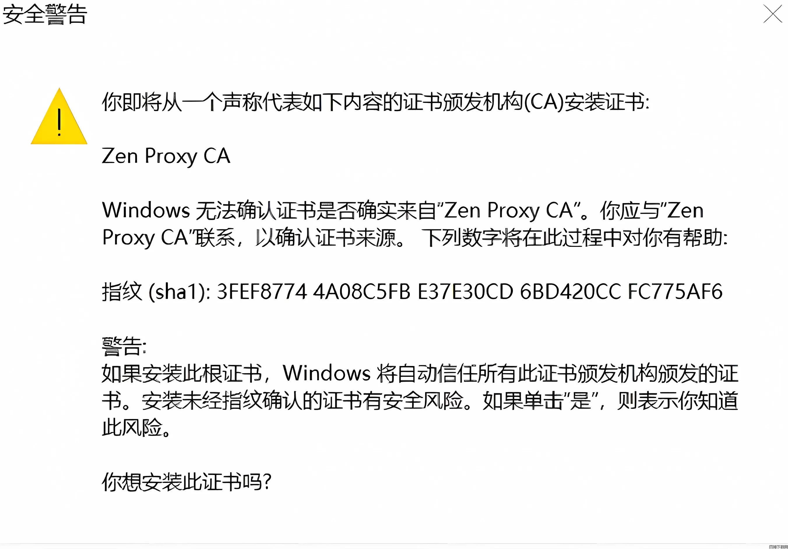 2、点击启动按钮会提示安装一个网络证书,这是Zen拦截和修改HTTPS请求所必需的,同意即可。如果以后不想用了,在软件的设置界面里也可以随时卸载这个证书。
