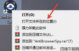 10、鼠标右击AntiBrowserSpy软件图标,打开文件所在位置。