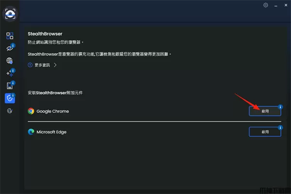 2、随后选择所需要保护的浏览器,点击红箭头处的“启用”即可。