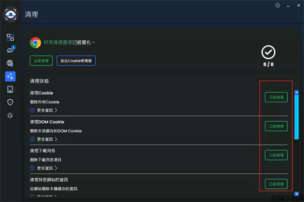 6、左边第四个板块,可以清楚浏览器不需要的数据,清理垃圾等等。