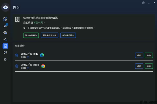 7、左边第五个板块,可以对软件进行数据备份,非常简单,选择一个文件夹就行了。