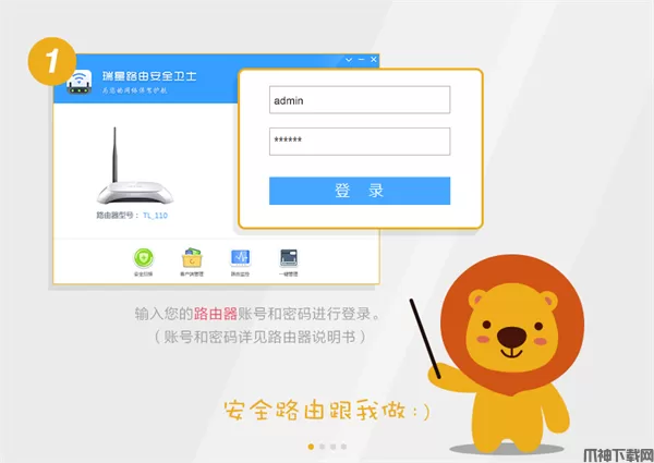 第一次使用瑞星路由安全卫士时,需要先登录路由器。用户只要打开软件,并在右侧的位置输入路由器设置页面的用户名和密码即可。不清楚上述账号的朋友可以去找一下路由器的说明书,里面会有明确的提示。