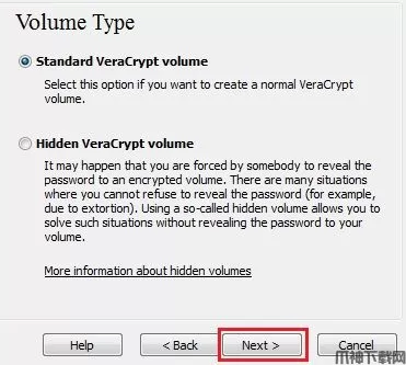 4、在此步骤中,您需要选择是创建标准还是隐藏 VeraCrypt 卷。在本教程中,我们将选择前一个选项并创建一个标准的 VeraCrypt 卷。由于默认情况下选择了该选项,您只需单击Next 即可。