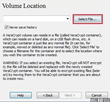 重要提示:请注意,VeraCrypt不会加密任何现有文件(在创建 VeraCrypt 文件容器时)。如果在此步骤中选择现有文件,它将被新创建的卷覆盖并替换(因此被覆盖的文件将丢失,而不是加密)。您将能够通过将现有文件(稍后)移动到我们正在创建的 VeraCrypt 卷来加密它们。*