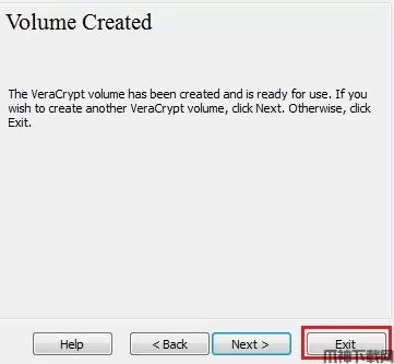 12、我们刚刚成功创建了一个 VeraCrypt 卷(文件容器)。在 VeraCrypt Volume Creation Wizard 窗口中,单击 Exit。