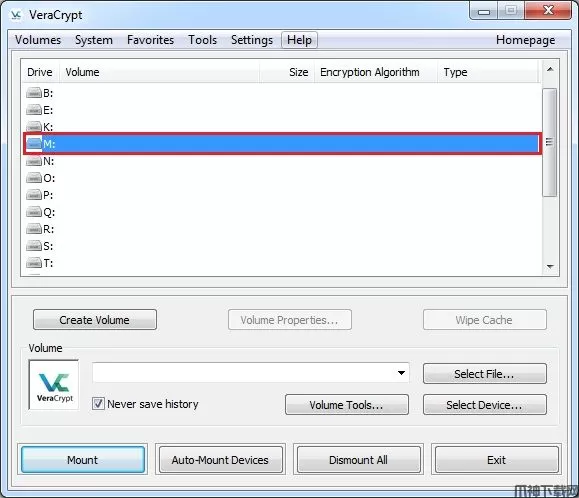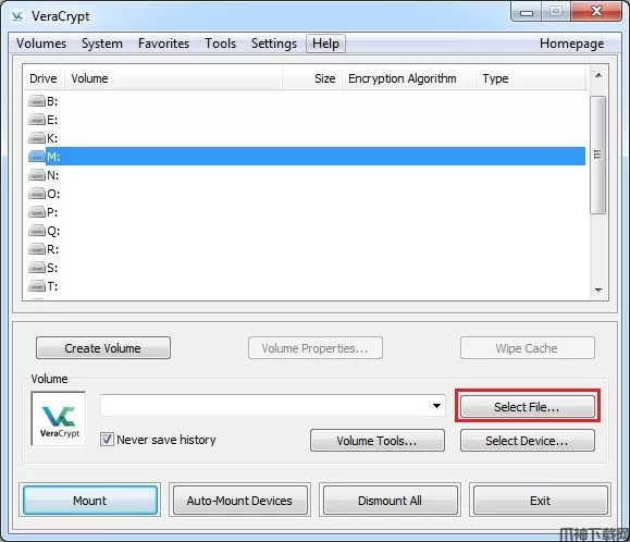 文件选择器窗口应该消失。在以下步骤中,我们将返回到 VeraCrypt 主窗口。