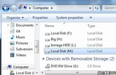 您还可以像通常浏览到任何其他类型的卷一样浏览到已安装的卷。例如,打开“计算机”(或“我的电脑”)列表并双击相应的驱动器号(在本例中为字母 M)。