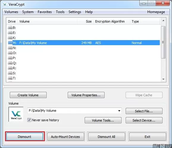 请注意,VeraCrypt 从不将任何解密数据保存到磁盘——它只是将它们临时存储在 RAM(内存)中。即使挂载了卷,存储在卷中的数据仍然是加密的。当您重新启动 Windows 或关闭计算机时,该卷将被卸载,并且存储在其中的所有文件都将无法访问(并被加密)。即使电源突然中断(没有正确关闭系统),存储在卷上的所有文件也将无法访问(和加密)。要再次访问它们,您必须安装卷。为此,请重复步骤 13-18。