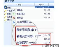 右键单击某条记录,可以把您记录的用户名或密码复制到剪贴板,也可以直接访问您记录的网址。