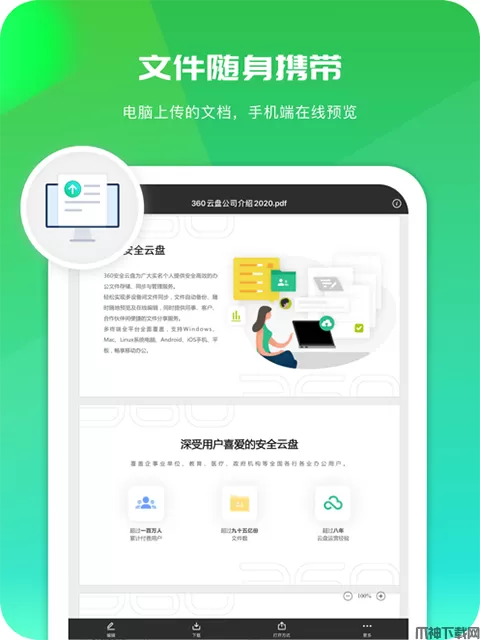 2、电脑上的文件用手机看,在电脑上把文件上传到360云盘,手机上可以立刻查看。