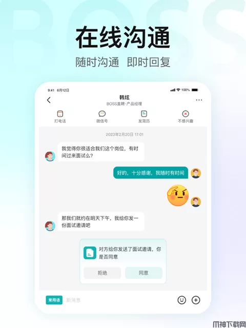 像微信一样的app,随时随地约聊Boss。
