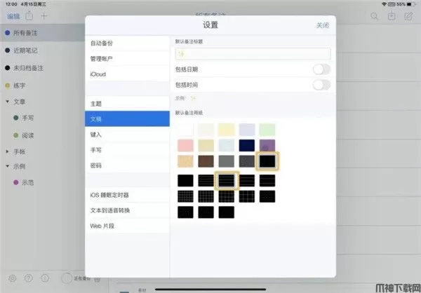 通过这里可以修改主题,一些主题是需要付费购买的,不过免费的也非常多,完全够用,还可以匹配 iOS 外观自动切换颜色,主题中的彩色主题选项,可以更改备注背景色,彩色过于花哨,关掉之后会更简洁好看。