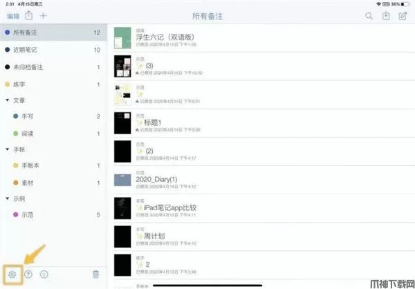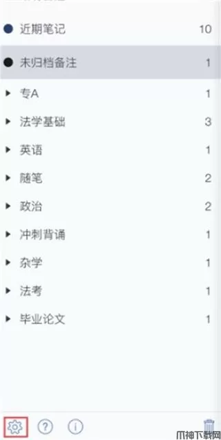 软件打开后可以直接上手使用记笔记,不过在此之前我们可以对它进行一些设置,这样使用起来会更顺手,首先打开应用主页,点击左下角齿轮图标进入设置,让后设置成自己习惯或者喜欢的操作设置。