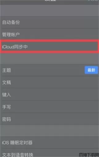 5、进入设置之后找到上面的“icloud同步”的选项,点击进去。