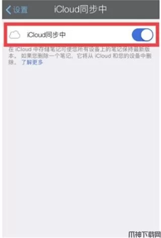 6、进入之后,我们就可以看到有同步的选项了,我们直接开启同步就好了。等待同步结束就可以到iPhone上的iCloud看到这些笔记啦!