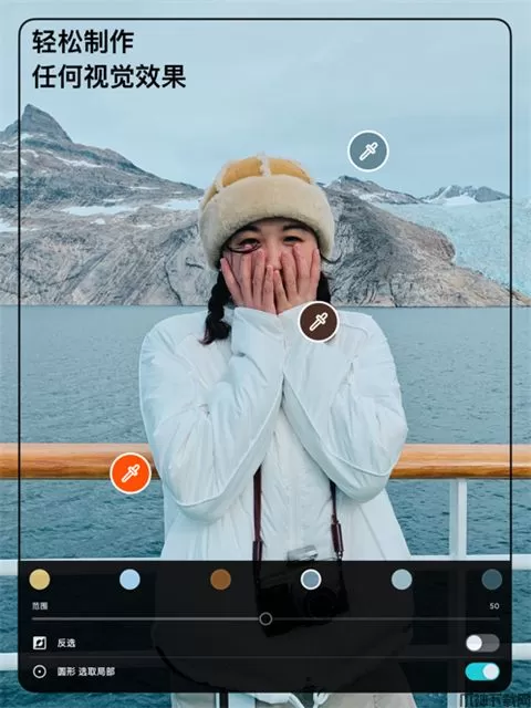 • 局部调整工具:笔刷,圆形,线性,选色,明度。