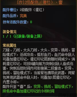 一级配件:猩红输出方面的基础,是刀战、变异模式下远程输出的基础配件。