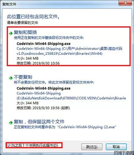 3、选择复制和替换原文件,且在左下角打勾;