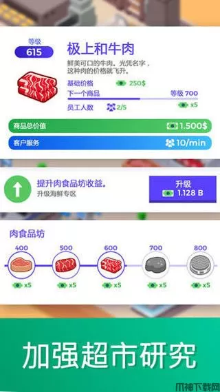 闲置超市大亨官方版是一款题材经典且趣味十足的休闲模拟经营手游!游戏顾名思义即主要围绕着超市经营为题材来进行,不仅采用了最精美卡通的风格设计、人物制作细腻呆萌、各种场景建设高清写实、以及拥有着超上百种的商品等,高度还原最真实有趣的超市经营全过程你来加入体验。而且经典的放置玩法只需指尖点击即可轻松上手,让玩家不但能瞬间化身为超市管理者,然后从一家小型超市开始选择优质商品,增建面包坊,出售果蔬、供应优质鱼类和肉类、开设自有香水专区和电子产品专区、以及聘请推销员等等,一步步加强超市研究、提升商品、服务和专区品质,让顾客装满他们的购物车、使自己赚取到丰厚的经营收益。同时你也可以利用这些资金,前往其他城市中大力发展超市业务,不断积累超市管理经验,建立你的超市帝国,最终成就为一名优秀的超市管理企业家哦。另外,除了核心的经营玩法,闲置超市大亨最新版还设置了统计系统,大家只需点击翻阅可查看当前超市的经营状况,从而方便玩家有针对性的谋定发展策略,确定强化方向等等,总之玩起来非常的有趣,喜欢的小伙伴还在等什么?赶紧来本3322软件站免费下载加入畅玩咯!(若游戏卡加载,请连接加速器进行游戏)
