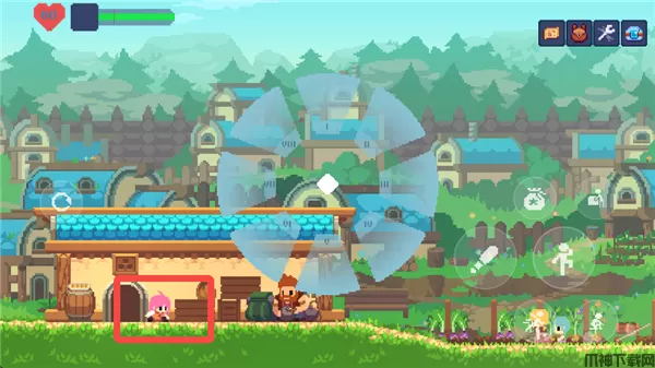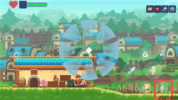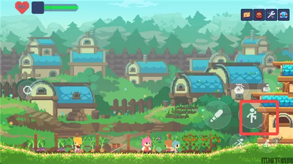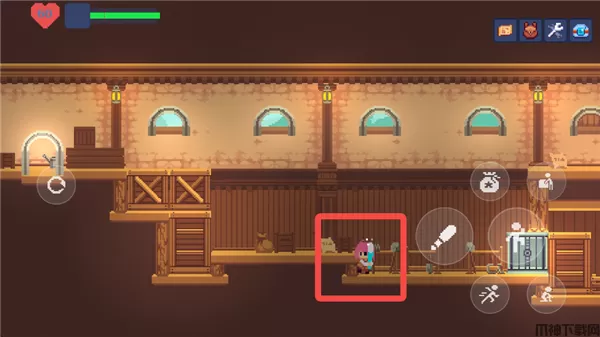 游戏的主交互键位于右侧按键的最上方,和NPC以及场景的交互都是依靠这个按键完成。在这个形态下,按下互动键和方向键则可以拖动一些场景内的箱子,从而跳到更高的地方。