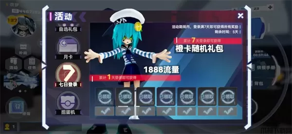这个不固定,这次的七天登录第一天给了1888流量