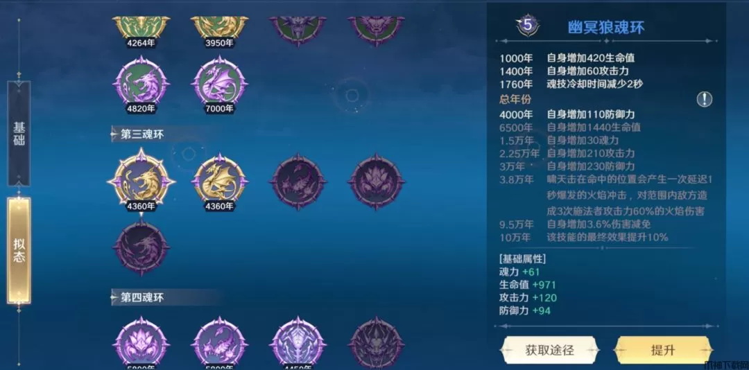 拟态魂环只需要通过【组队猎魂】获取更高年份魂环即可完成升级,使得面板属性与技能效果强化;