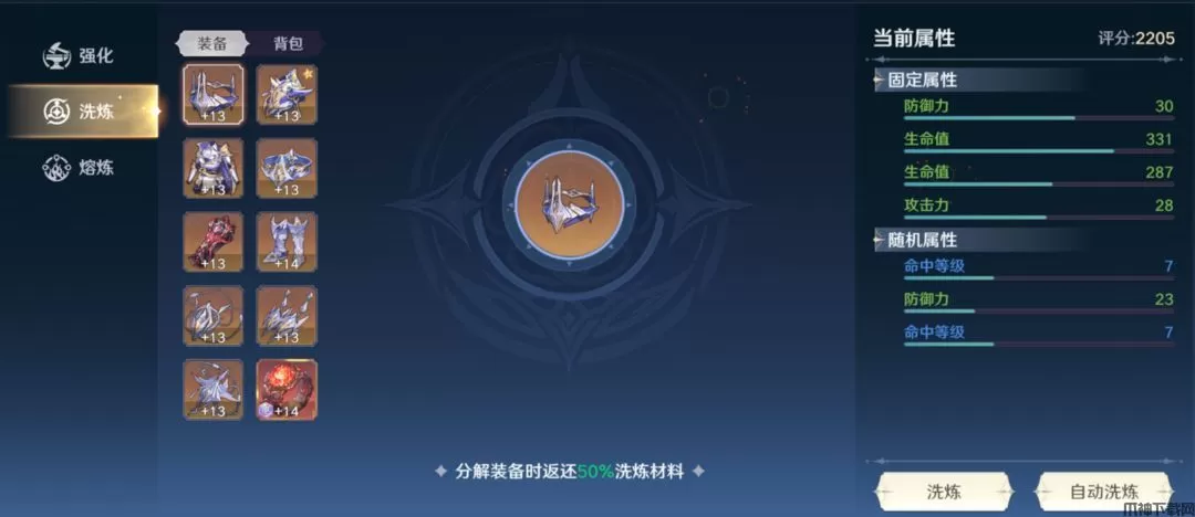 获取了装备自然也要强化,装备的强化分为【强化】【洗练】与【熔炼】