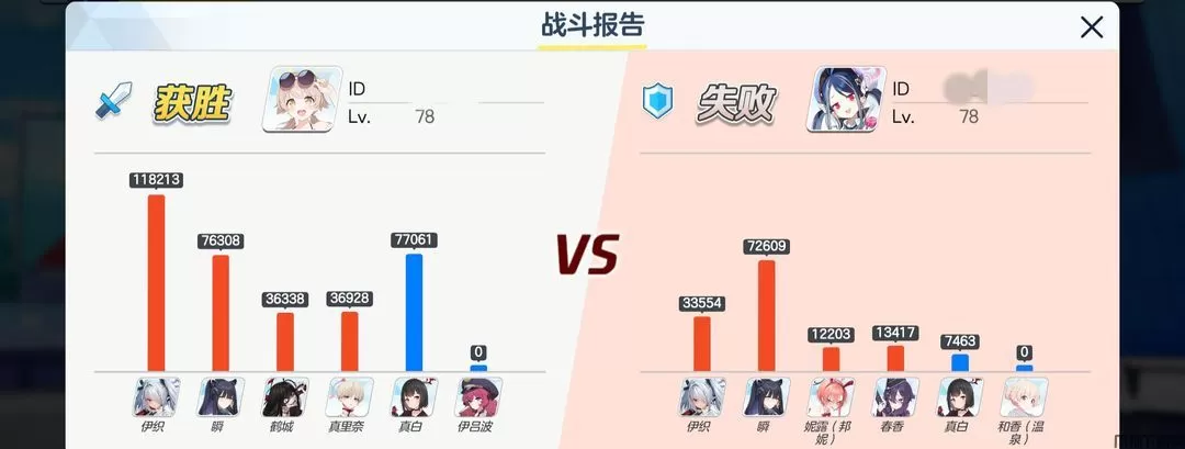 通过伊织,水真白与真白的高输出快速的处理对手的前排,真白无暴击伤害3w—4w左右,一段暴击是6w—7w,二段暴击10w以上打春香真理奈很有效,水真白降闪伊织处理狗盾与星野。