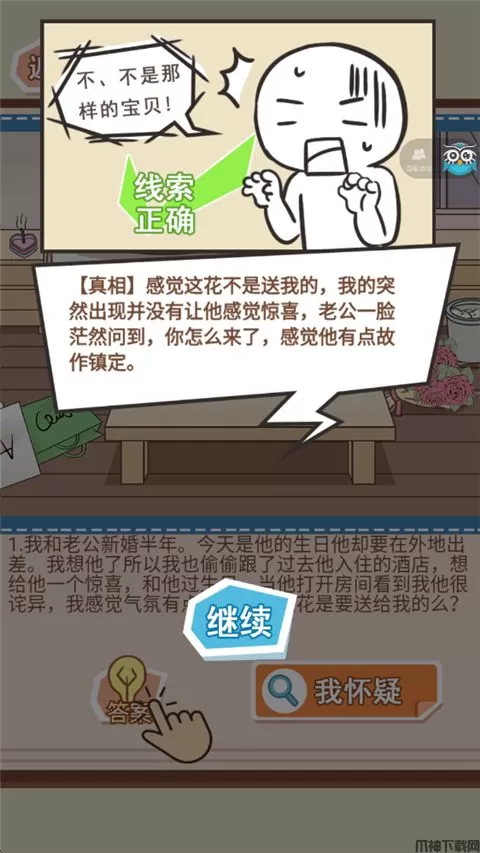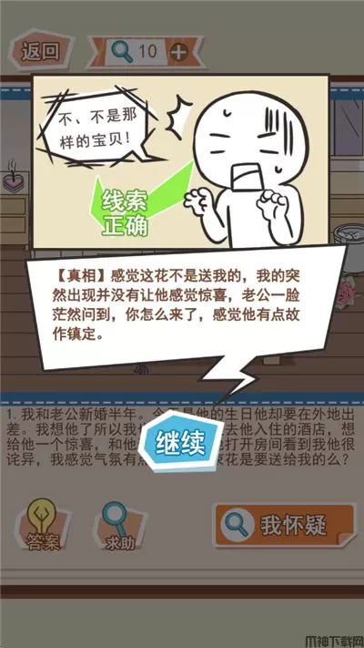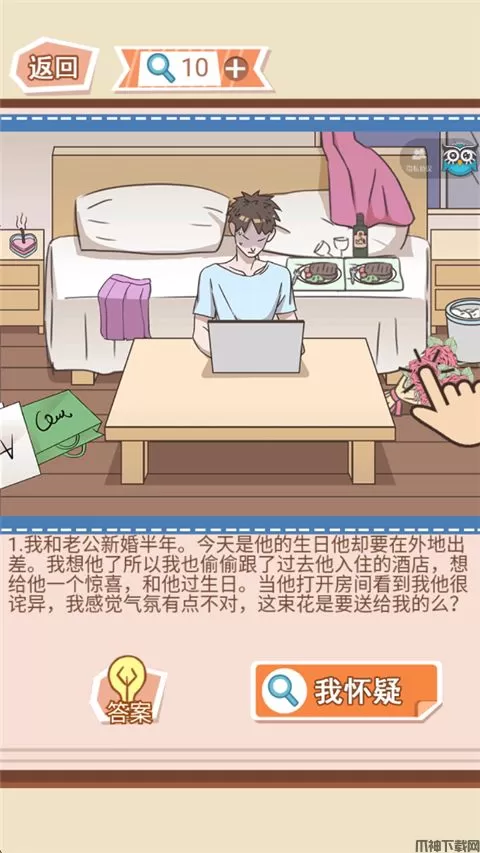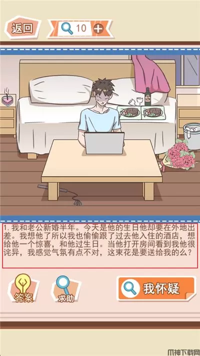 你居然怀疑我是一款恋爱剧情风格的休闲文字解谜游戏,以线索及证据的方式来判断是非,让我们跟随着主人公视角一起解开最后的真相。游戏提供男版、女版两种模式,玩家需要通过男版十个关卡即可解锁女版玩法,拥有大量的关卡可挑战,玩家需要在游戏当中找出所怀疑的目标,比如怀疑屋子里有香味,你就需要找出对应的香薰,主要任务就是揭穿对方的各种理由从而完成闯关。你居然怀疑我官方版整体解谜难度不深,但是结合剧情故事进行线索安排,使得玩家需要根据剧情进行互动,逻辑思维更加活跃。
