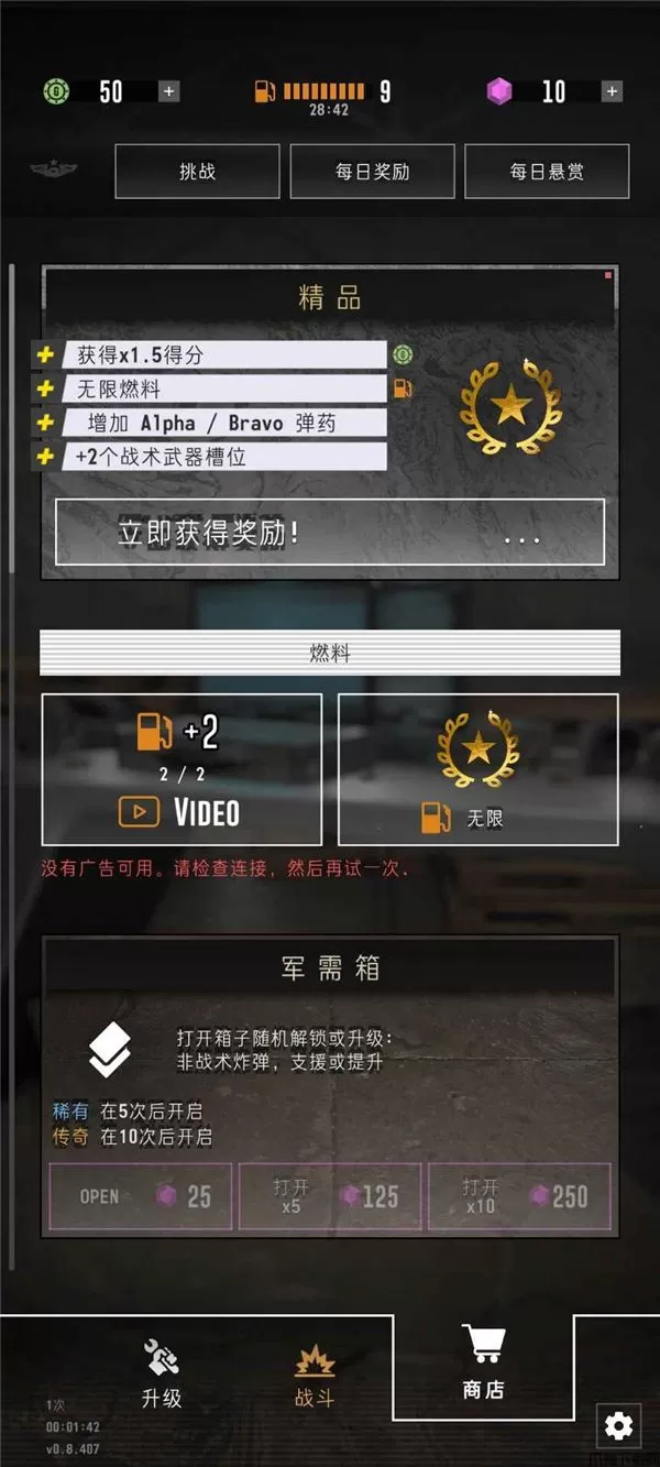 8、玩家可用钻石来开宝箱,可获得战术炸弹等装备。