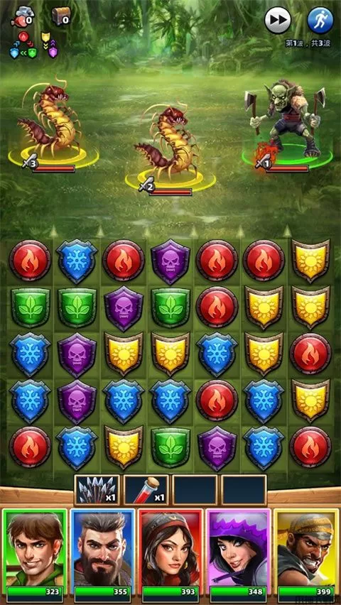 这款手游的战斗界面为三消系统: